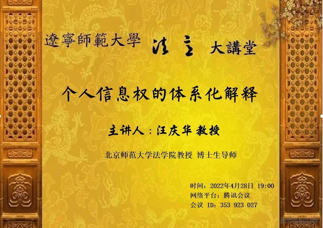beat365vip官网登录入口法学院“法益大讲堂”再次开讲了!此次的主题为《个人信息权的体系化解释》,主讲人是北京师范大学法学院博士生导师,汪庆华教授。beat365官网韩秀义教授作为与谈人参与了讨论。本次讲座由夏红教授主持,法学院教师、学生数百人参与了本次活动。