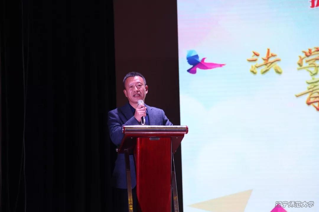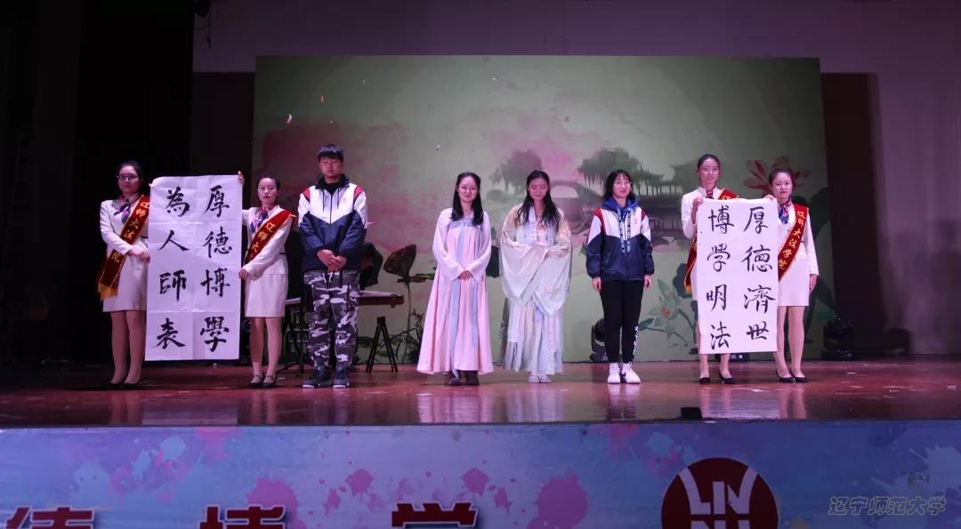 其次由崔嫣、戚英基、高小涵等同学带来朗诵《永远在路上》。我们自豪,我们是辽师法学人,我们骄傲,我们是中国未来的法律人。