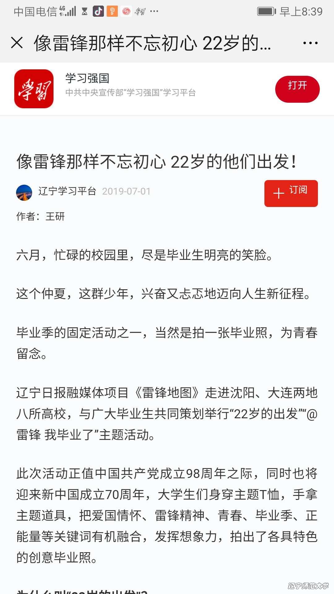 《学习强国》和《辽宁日报》对beat365vip官网登录入口法学院“向祖国致敬”毕业生主题教育活动进行报道