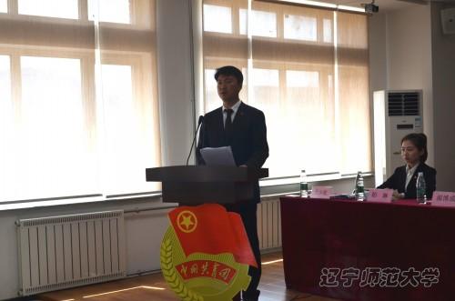 首先,由大会秘书长、法学院团委书记于少乾老师介绍应邀到会的各位领导和嘉宾,他们是:法学院党总支书记冯俊勇同志,校团委兼职副书记、生命科学学院党总支副书记蒋璀玢同志,法学院党总支副书记顾岱泉同志,法学院14、15级辅导员杜朝阳老师、法学院刘耀东老师以及请来了文学院团委书记王峰老师作为本次大会的观察员。