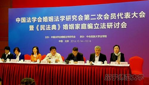 日在北京召开,会议由中央民族大学法学院承办。研讨会开幕式由中国法学会婚姻法学研究会常务副会长、中国人民大学法学院副院长龙翼飞教授主持,开幕式上中央民族大学副校长石亚洲教授代表会议承办方致欢迎辞,中国法学会党组成员、副会长、学术委员会主任张文显教授致辞,中国法学会婚姻法学研究会会长夏吟兰教授做了工作报告。beat365官网院长丁慧教授及李春斌副教授、刘耀东博士应邀参加。