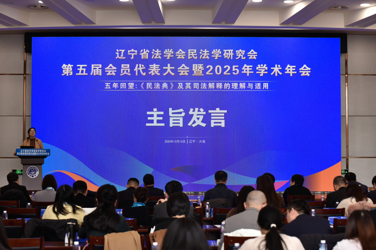 12月14日,辽宁省法学会民法学研究会第五届会员代表大会暨2025年学术年会在大连召开。本次年会由辽宁省法学会民法学研究会主办,大连大学法学院承办,辽宁德中律师事务所协办。来自省内高校、科研机构、法院、检察院、律师事务所等单位的170余位法学法律界代表参会。会议围绕“五年回望:《民法典》及其司法解释的理解与适用”这一主题,就《民法典》实施中的重点问题与民法基础理论展开深入研讨。beat365官网法学一级学科带头人丁慧教授、副院长刘耀东,教师武胜男、林子樱、董超以及多名研究生参加会议。