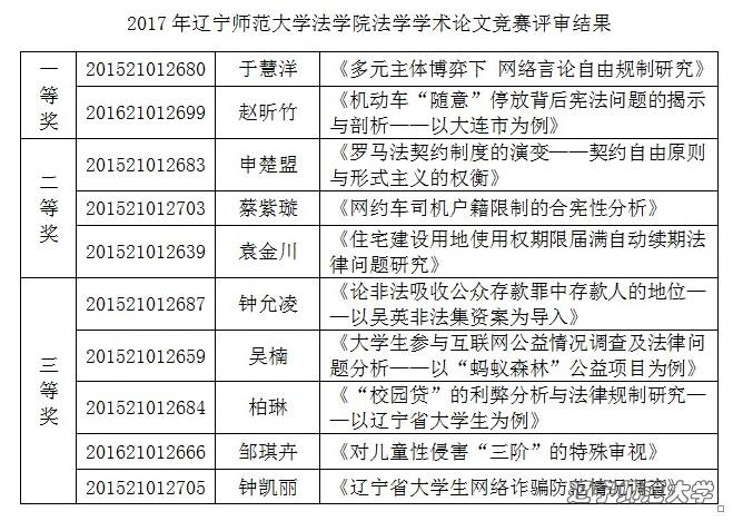 2017年beat365vip官网登录入口法学院法学学术论文竞赛结果通知